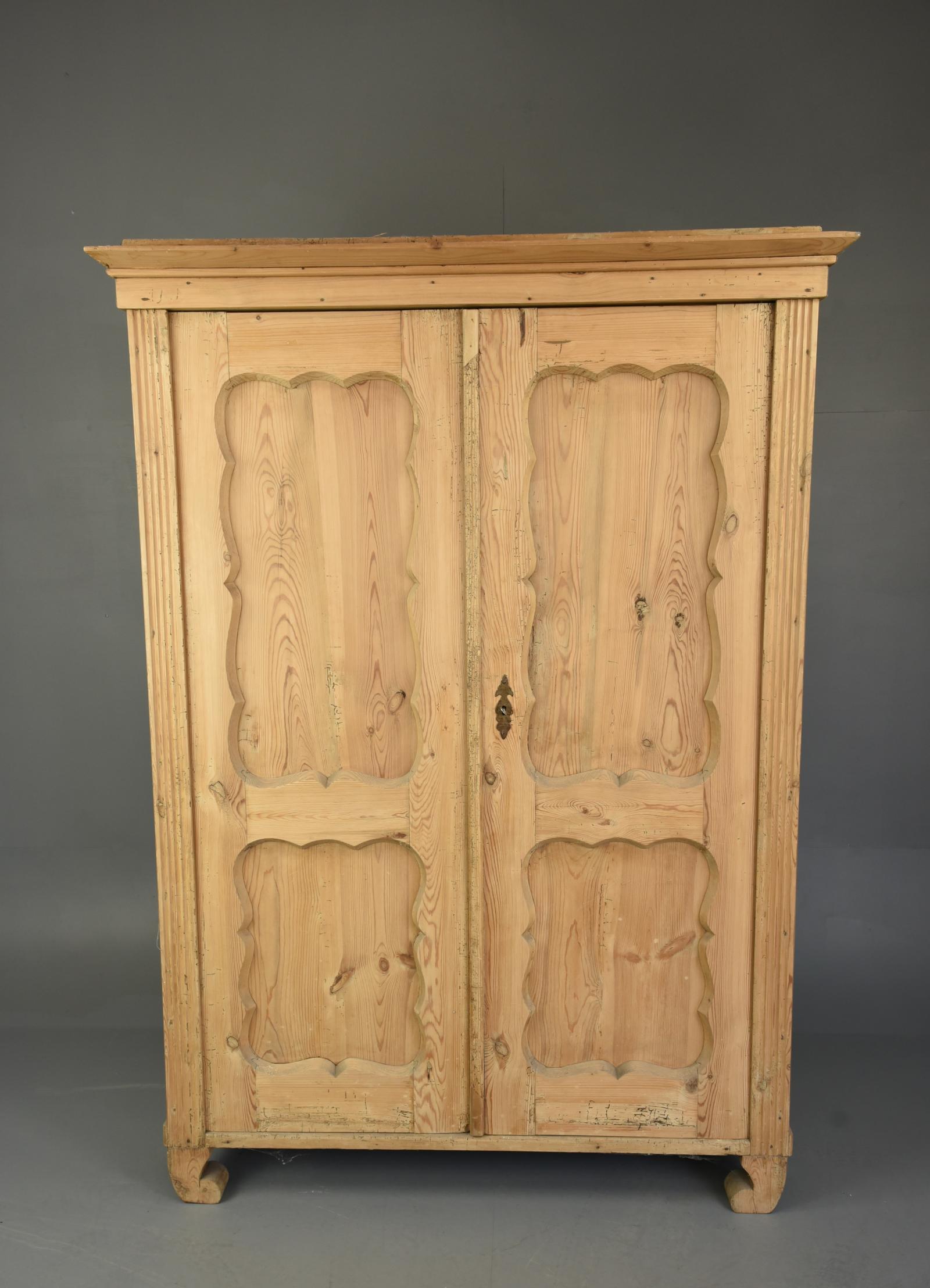 This is a good quality 19th Century heavy pine two door cupboard it has been recently stripped and waxed it is in great condition and a good colour. The interior is fitted with a double row of hanging hooks. It retains all original iron work and comes with a working lock and key.