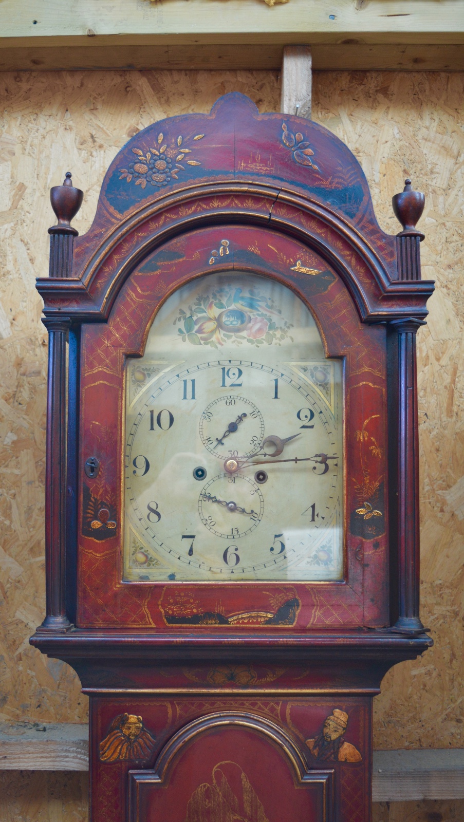 19th Century Red Lacquer Longcase Clock Grandfather Clock