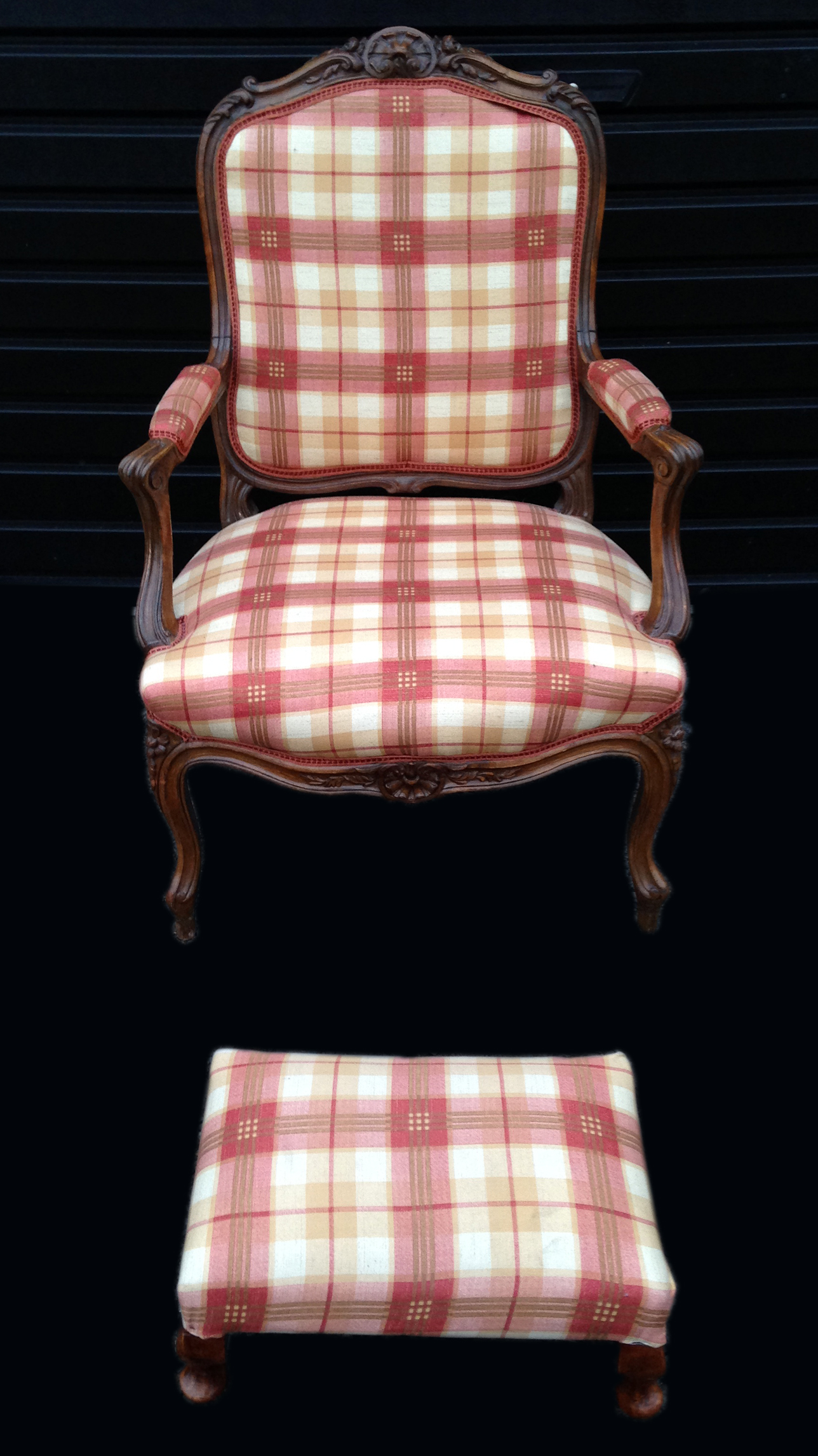 Antique French Louis XVI carved walnut open arm chair Stool french arm chair