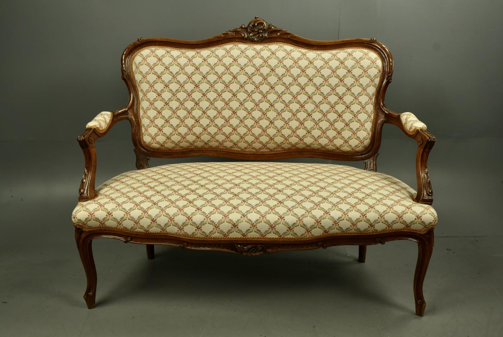 The settee has a very well carved walnut frame standing on fine carved cabriole legs.