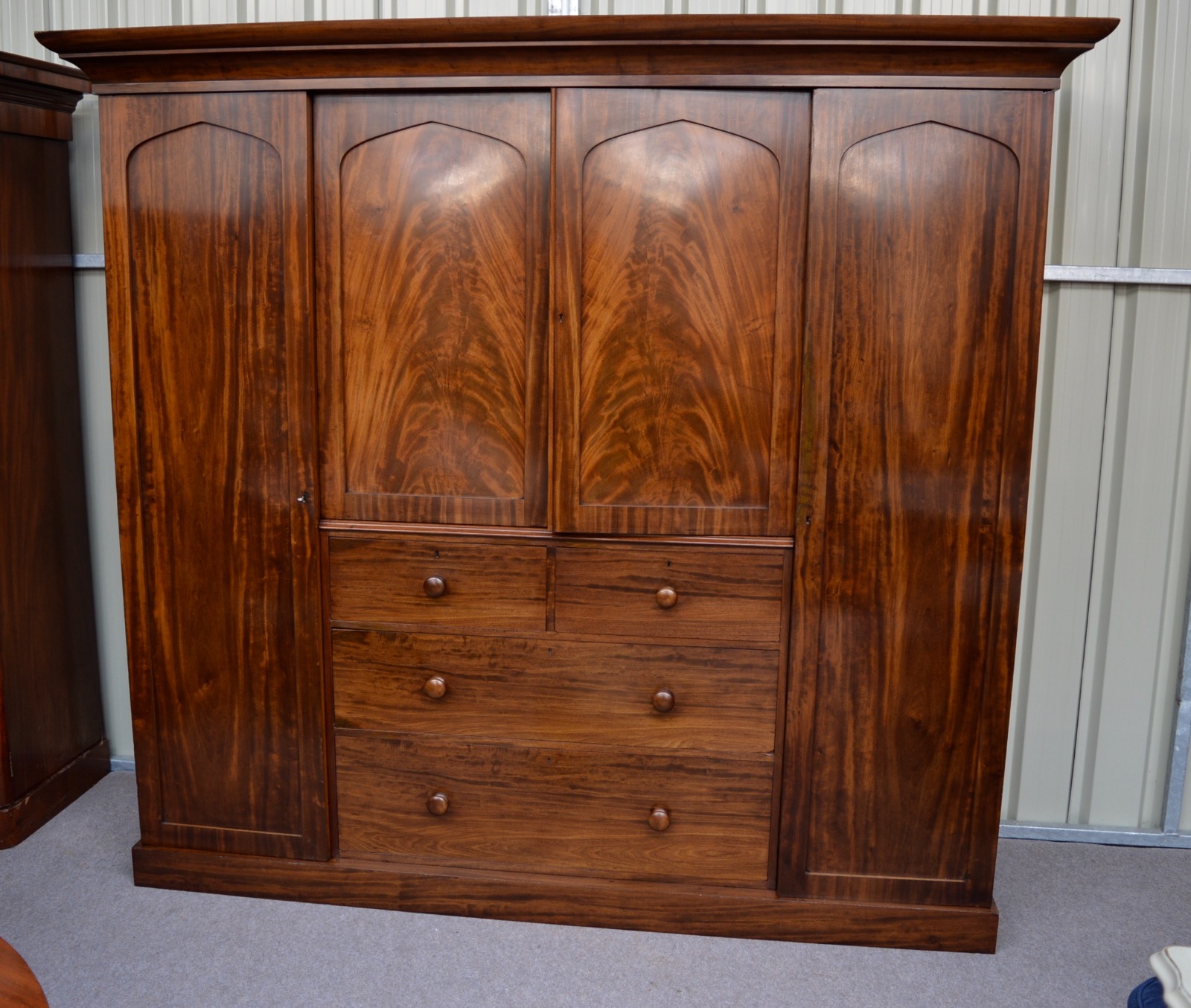 Antique Georgian 4 Door Mahogany Wardrobe Linen Press Compactum