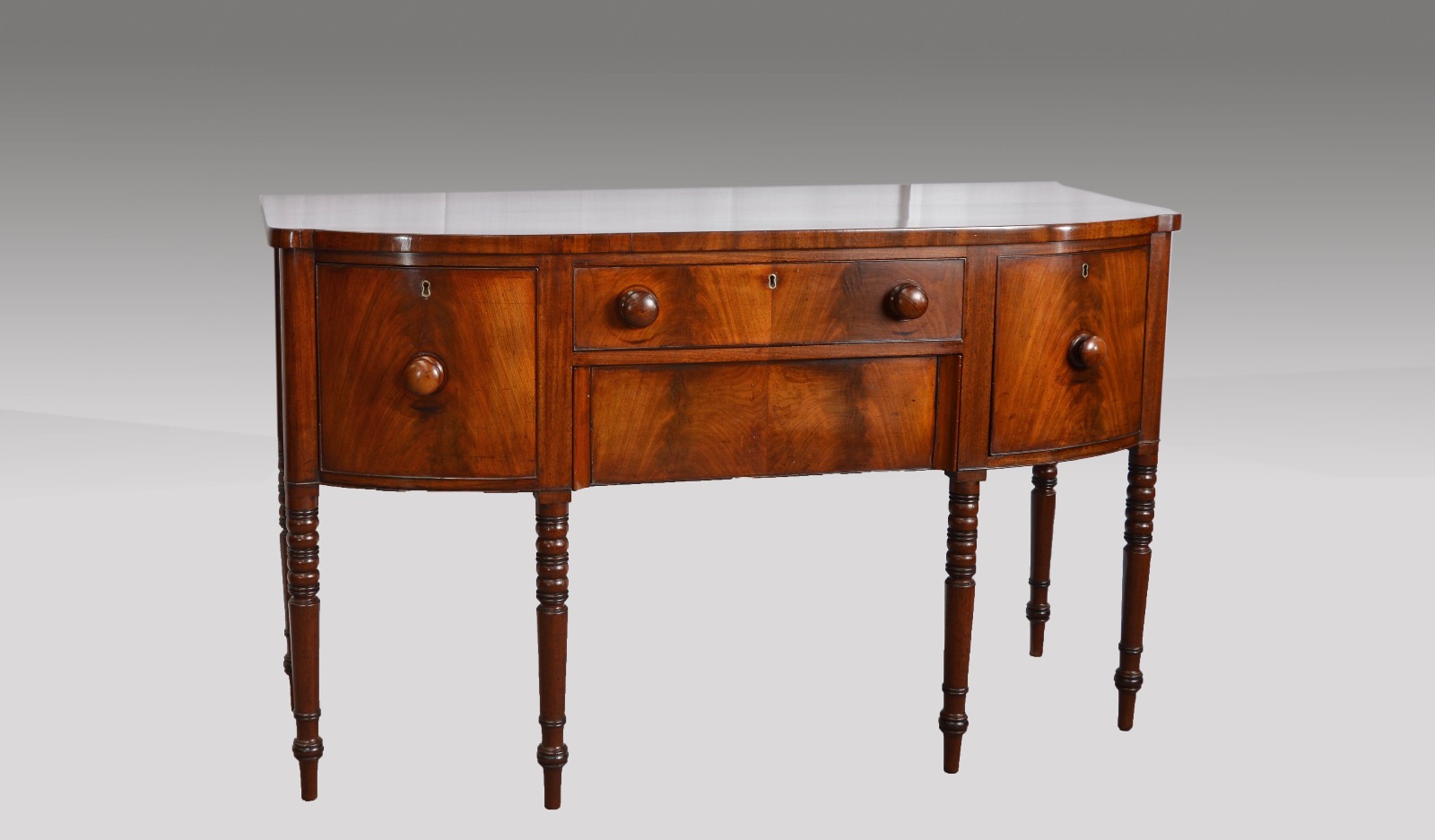 Fine quality Antique Georgian mahogany sideboard which is in great condition and has a wonderful grain and patina. It has been fully restored to a high standard and has been French polished by hand in the traditional method to retain all the charm and warmth this beautiful Antique sideboard has achieved over the last 200 plus years.