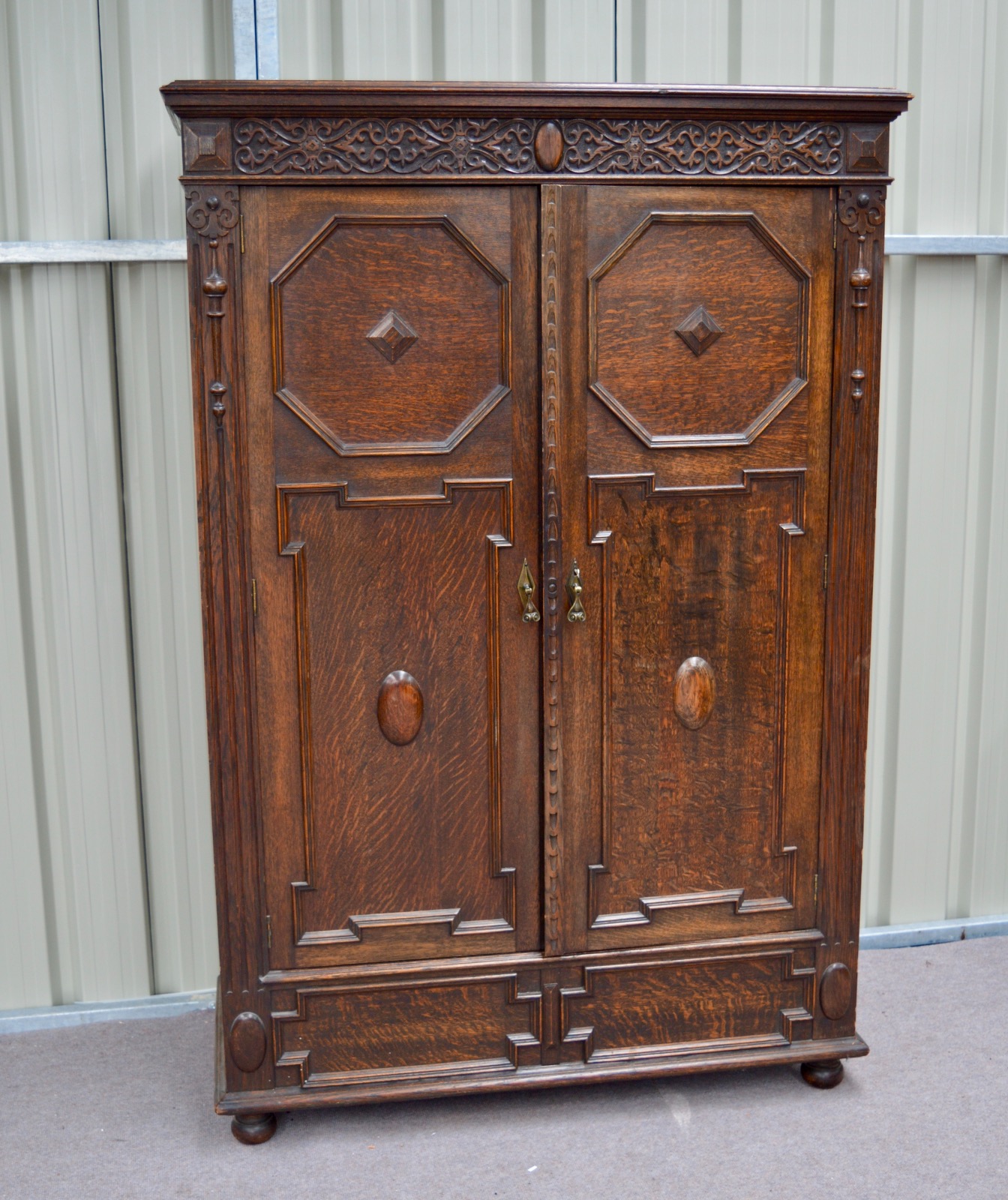 Antique Jacobean Carved Oak Wardrobe c.1900