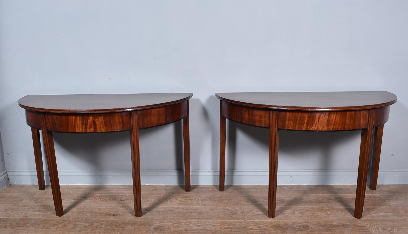 Antique Pair of Georgian Mahogany Demi lune Console Tables