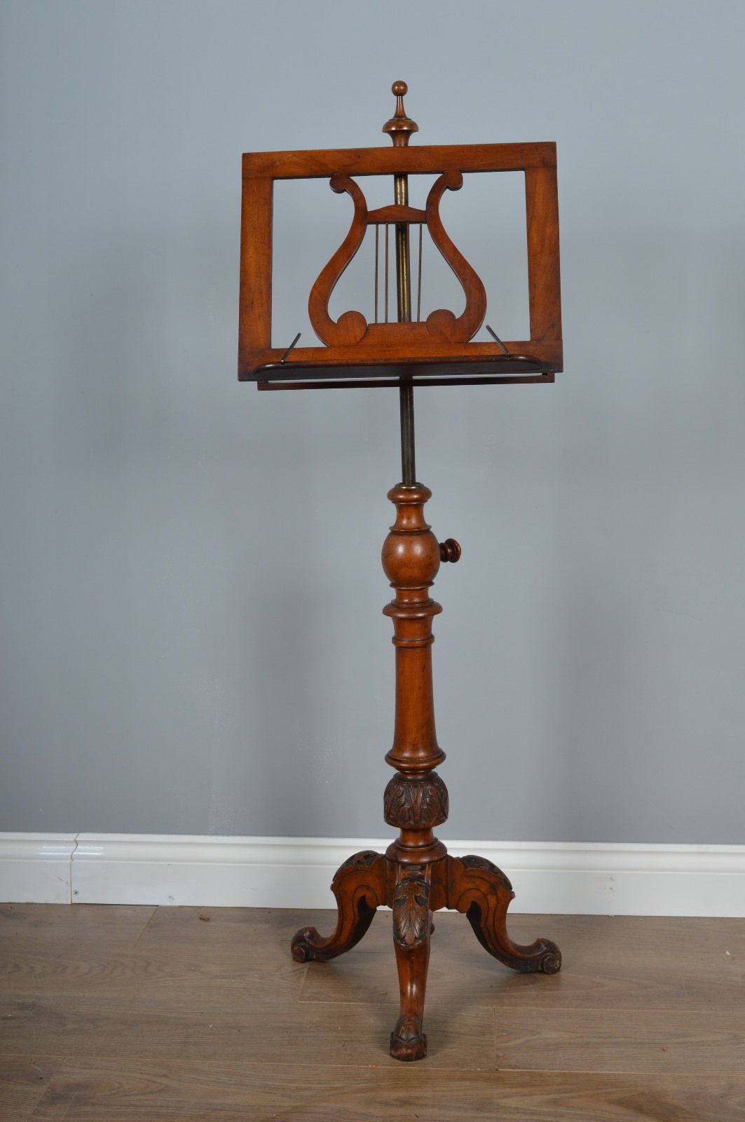 Antique Victorian mahogany music stand with nicely carved base. The music stand is fully height adjustable and in very good original condition.
