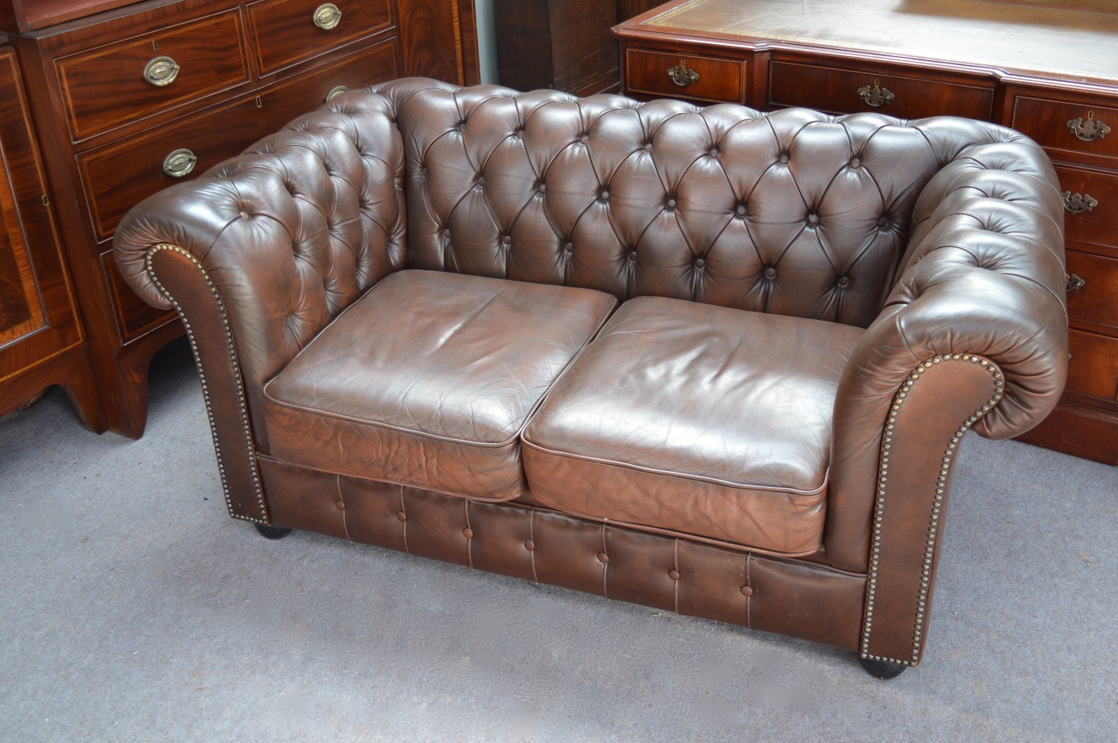 This is a good quality vintage leather Chesterfield style sofa in very good used condition no holes or buttons missing. It has a wonderful vintage worn patina.