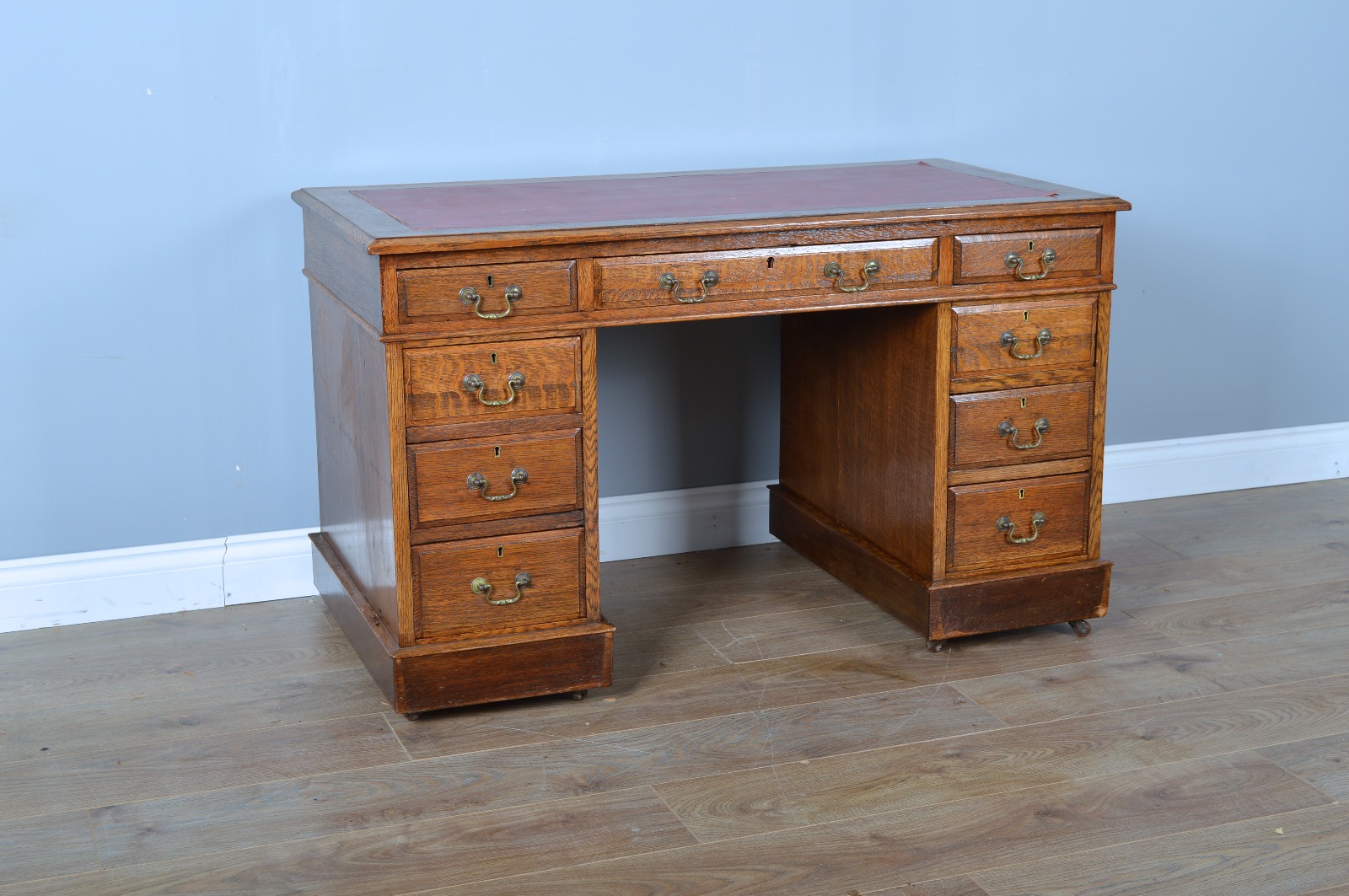 Edwardian Oak Antique Pedestal Desk
