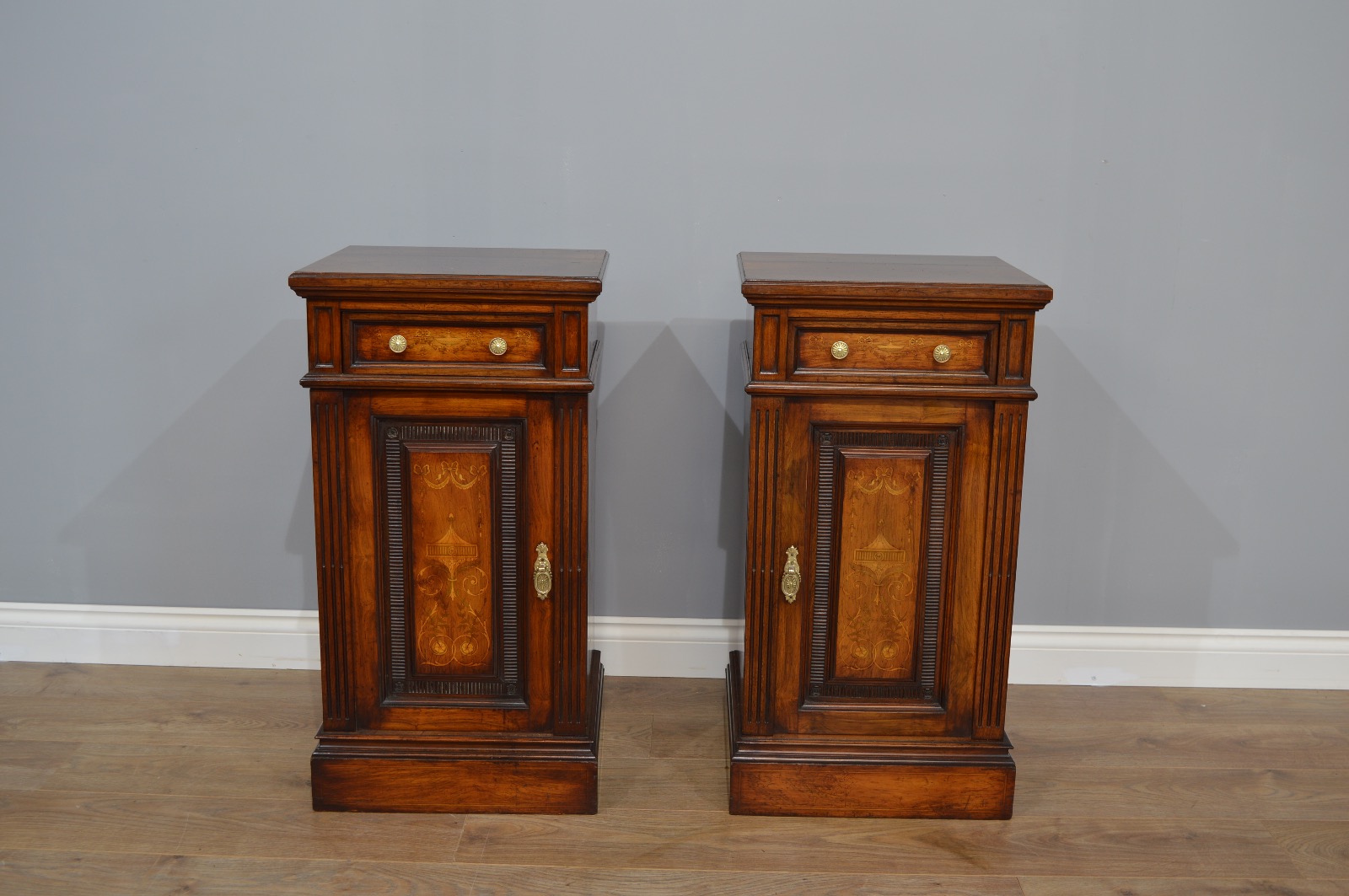 Fine Pair of Rosewood Inlaid Pedestal Cabinets Attributed To Edwards & Roberts