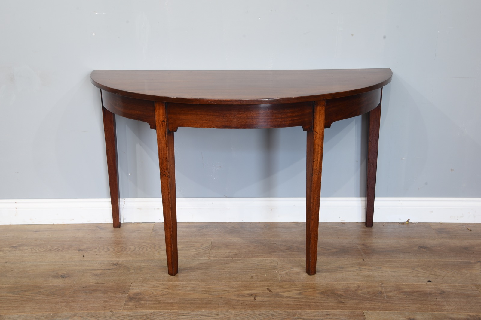 Antique Georgian mahogany Demi lune console table in wonderful condition having been fully restored in our workshop ready for its new home.