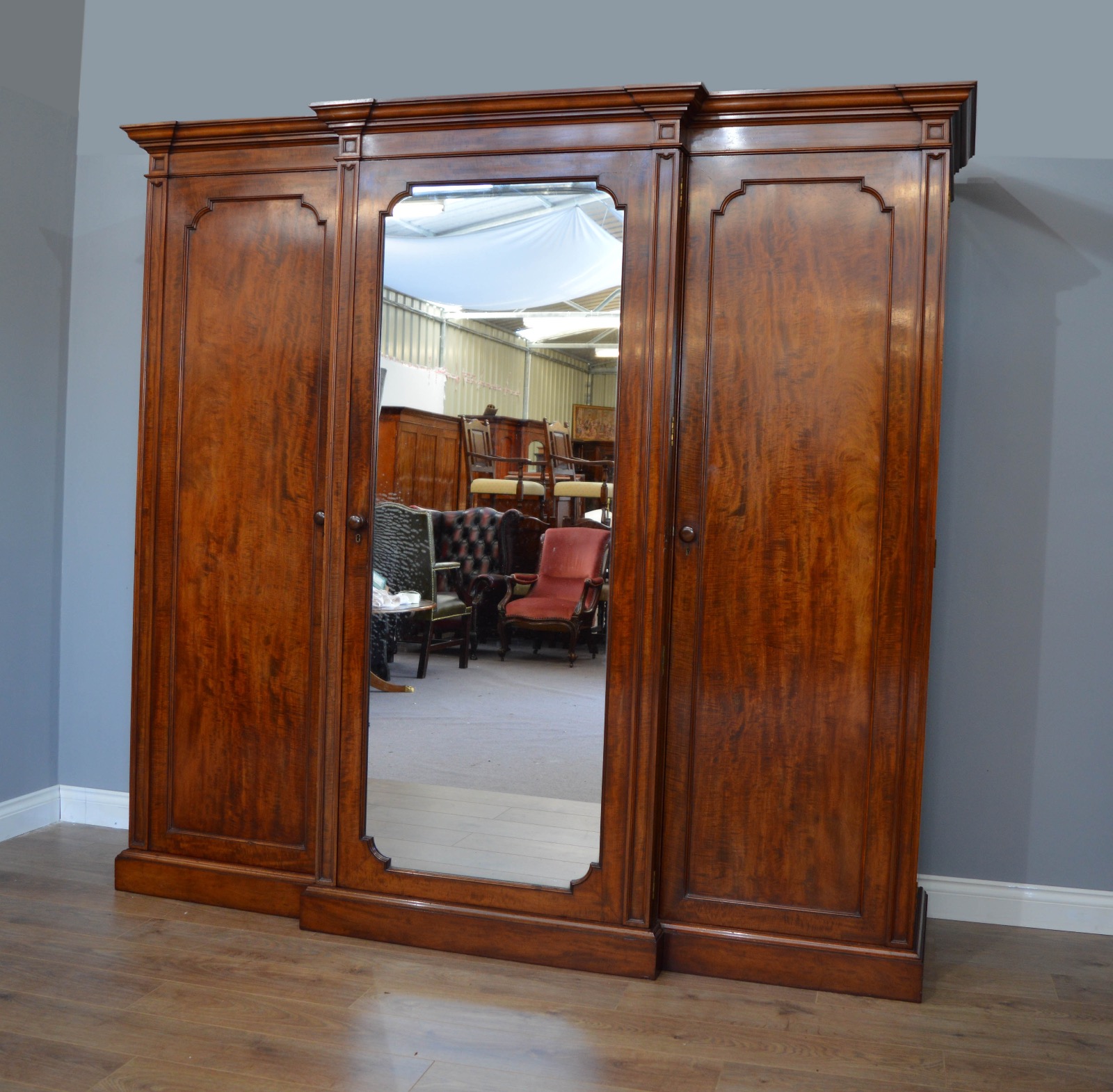 Gillow Antique Victorian Mahogany Triple Wardrobe