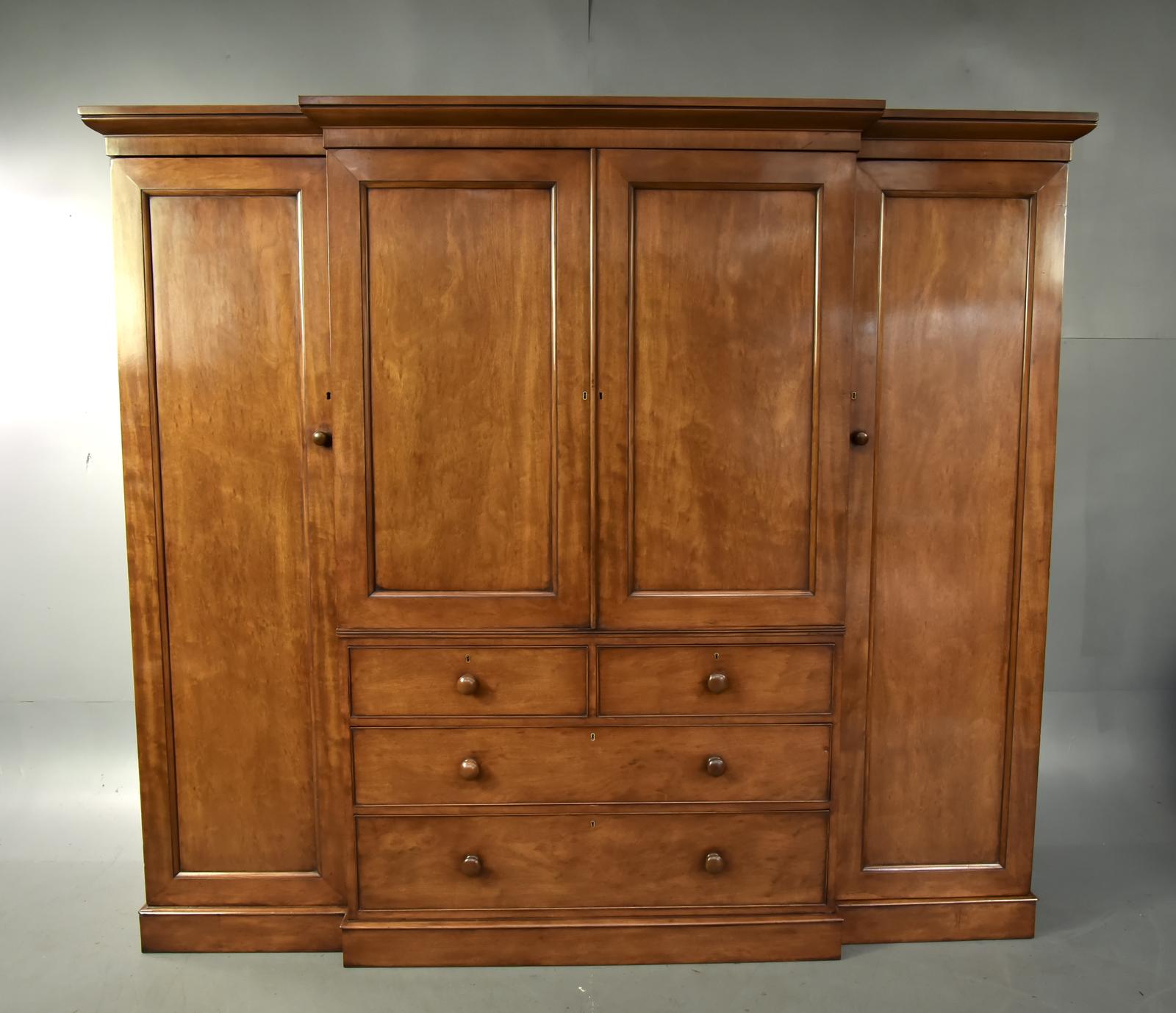 Fine quality Georgian mahogany breakfront wardrobe .