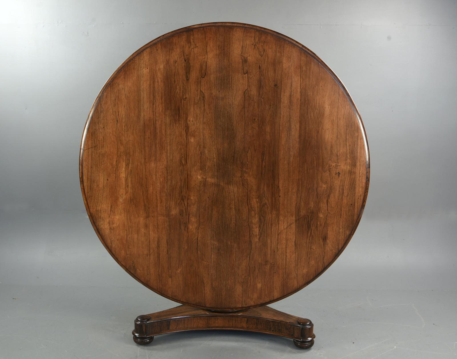 This is a fine quality 19th Century Regency antique rosewood centre dining table has a wonderful grain and colour with tilt top action. It stands very solid and in great condition with a wonderful patina.