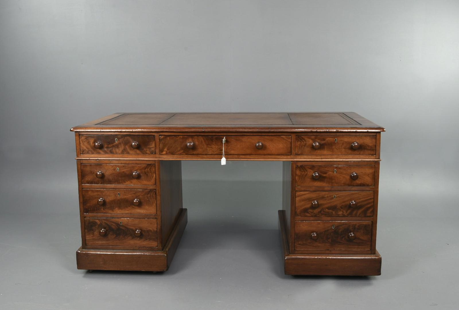 A fine quality large Victorian flame mahogany pedestal desk .5ft wide