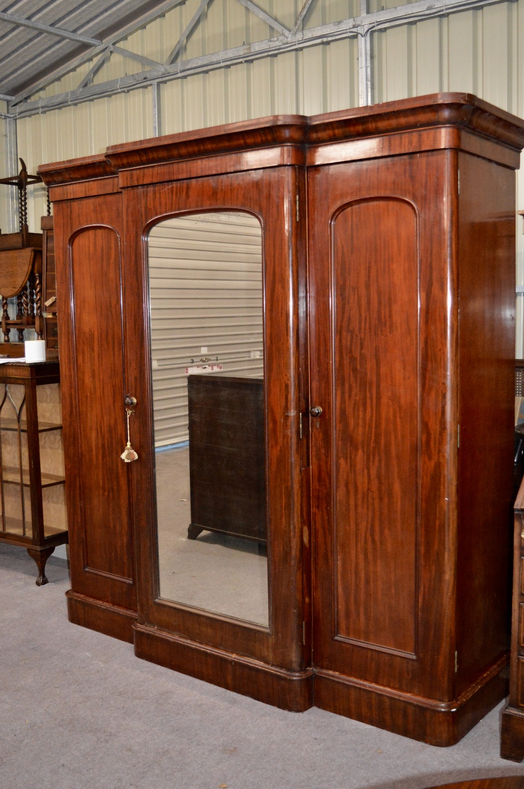 Large Victorian Mahogany Breakfront Wardrobe Compactum Triple Wardrobe