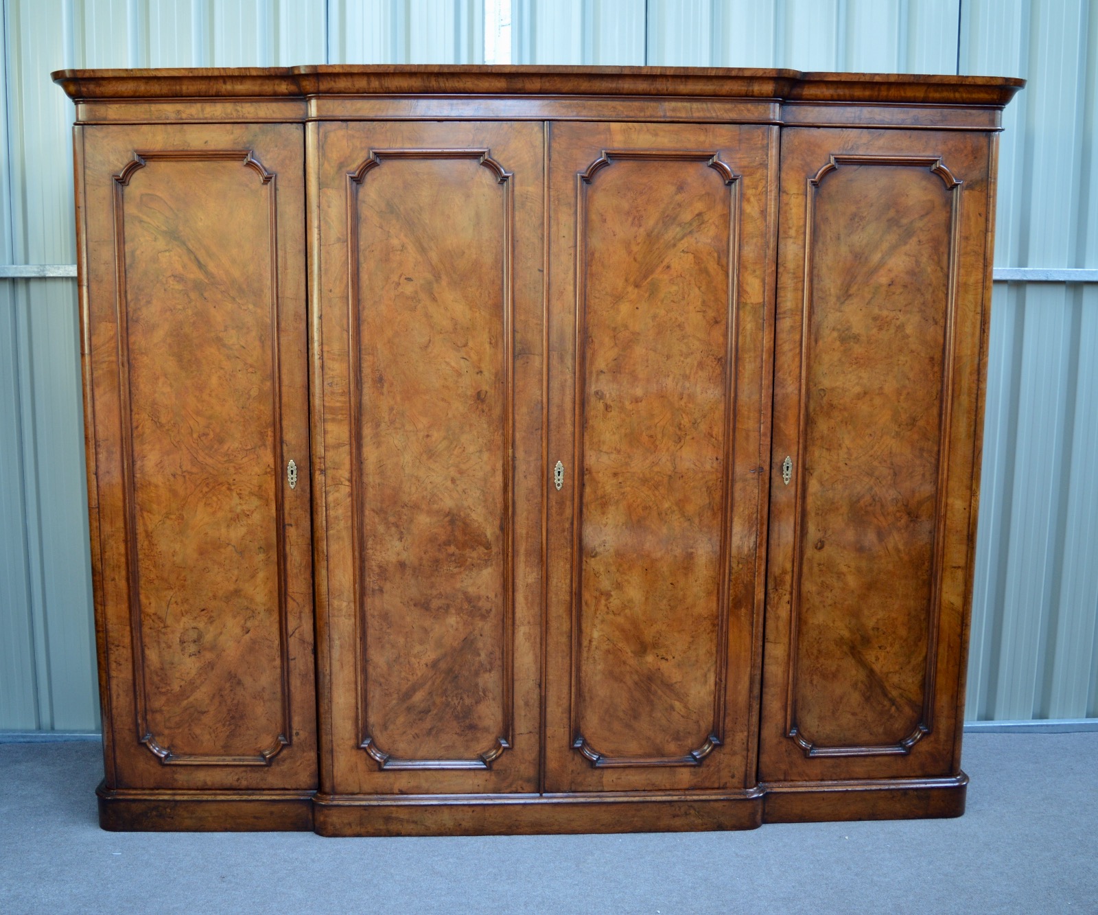 Large Victorian Walnut 4 Door Breakfront Wardrobe Compactum