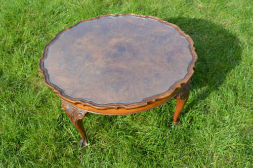 On offer for sale is this very good quality large burr walnut coffee table with a fine pie crust edge and claw and ball legs , the coffee table has a wonderful full figured grain top that is in great condition, the previous owner had a glass insert cut to slot in the shaped top this cost over £200 to have done.