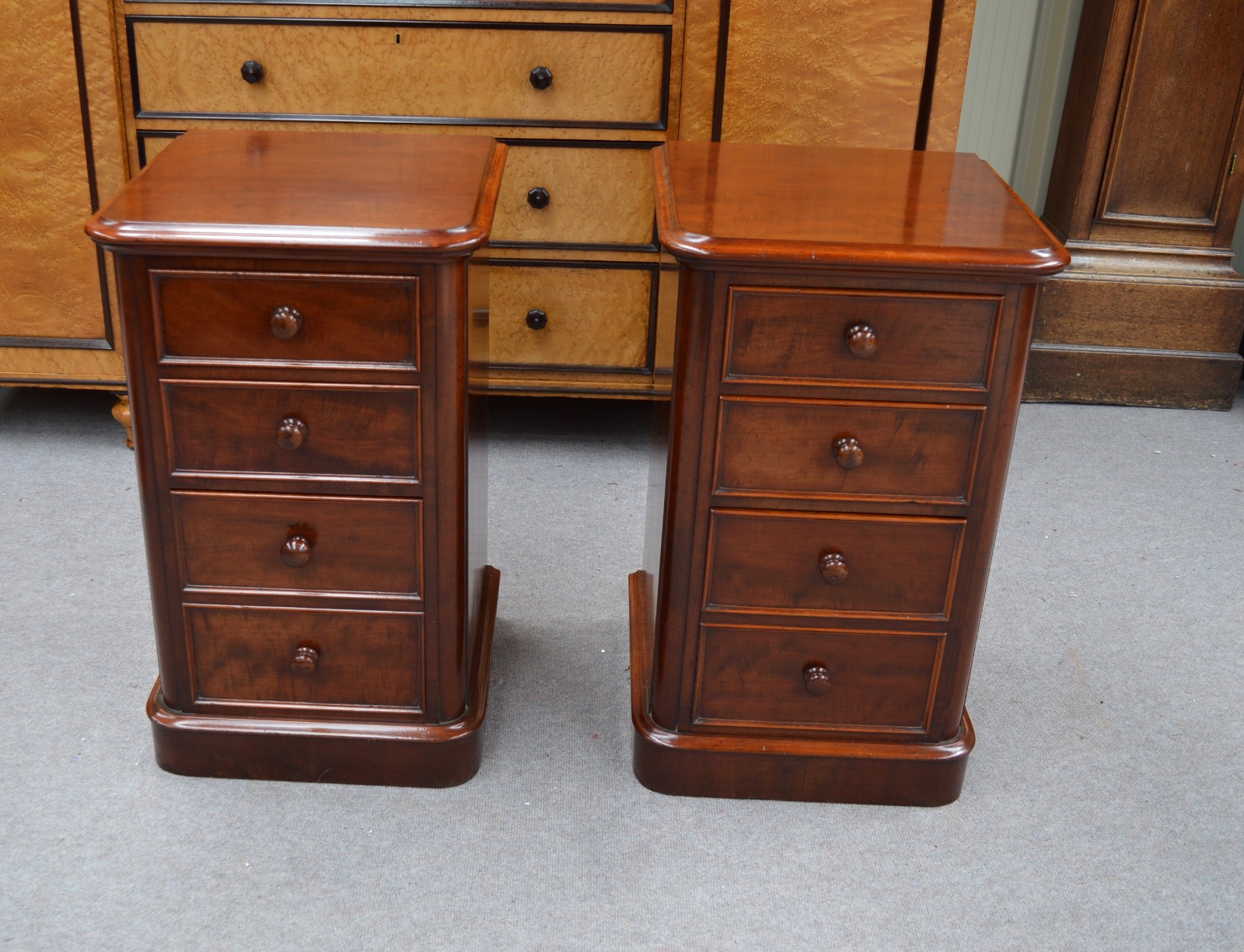 wonderful pair of mid Victorian mahogany bed side chests of drawers ,they are in great condition having been fully restored and French polished in our work shop by our highly skilled restorers that have 50 years experience. The chests have three drawers in each the bottom drawer being a deep drawer.
