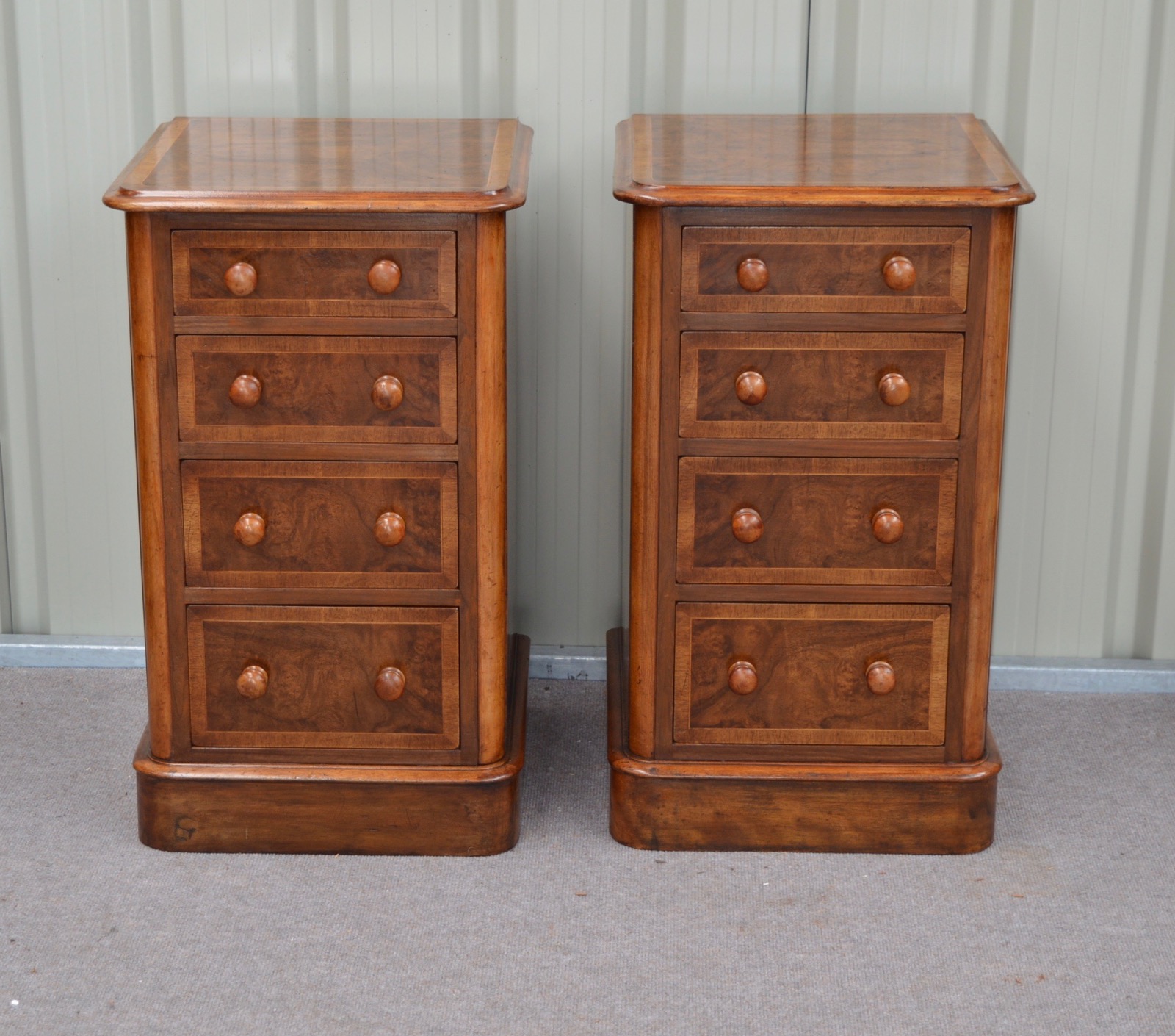 Fine Quality pair of Victorian walnut bedside chests of drawers with four graduating drawers in very good condition having been fully restored in our workshops to a very high standard , and are very nicely proportioned pairs of Victorian walnut bedsides are very seldom on the open market these will be very popular and will not be for sale for long.