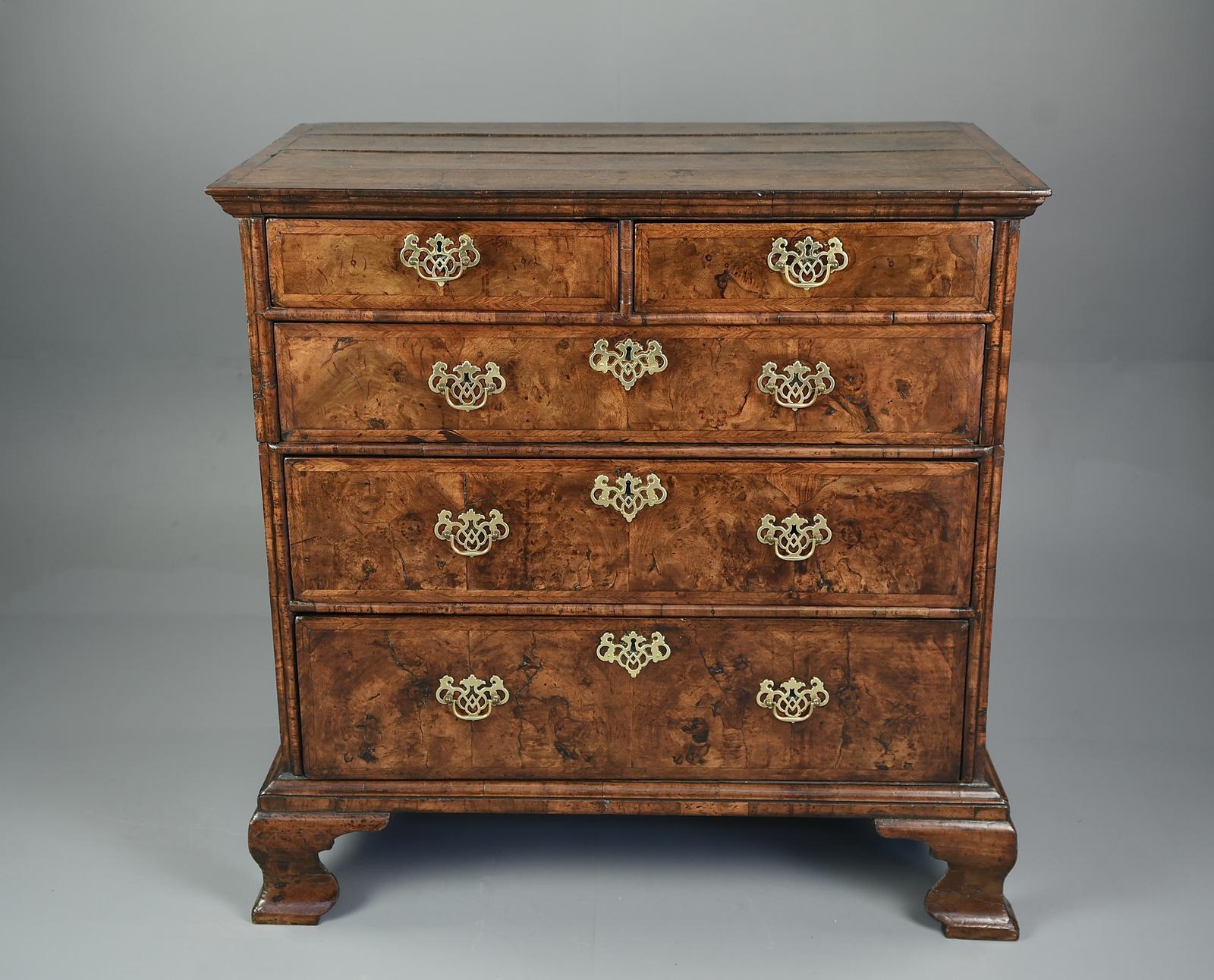 A very rare late 17th century walnut and oak Queen Anne chest of drawers.