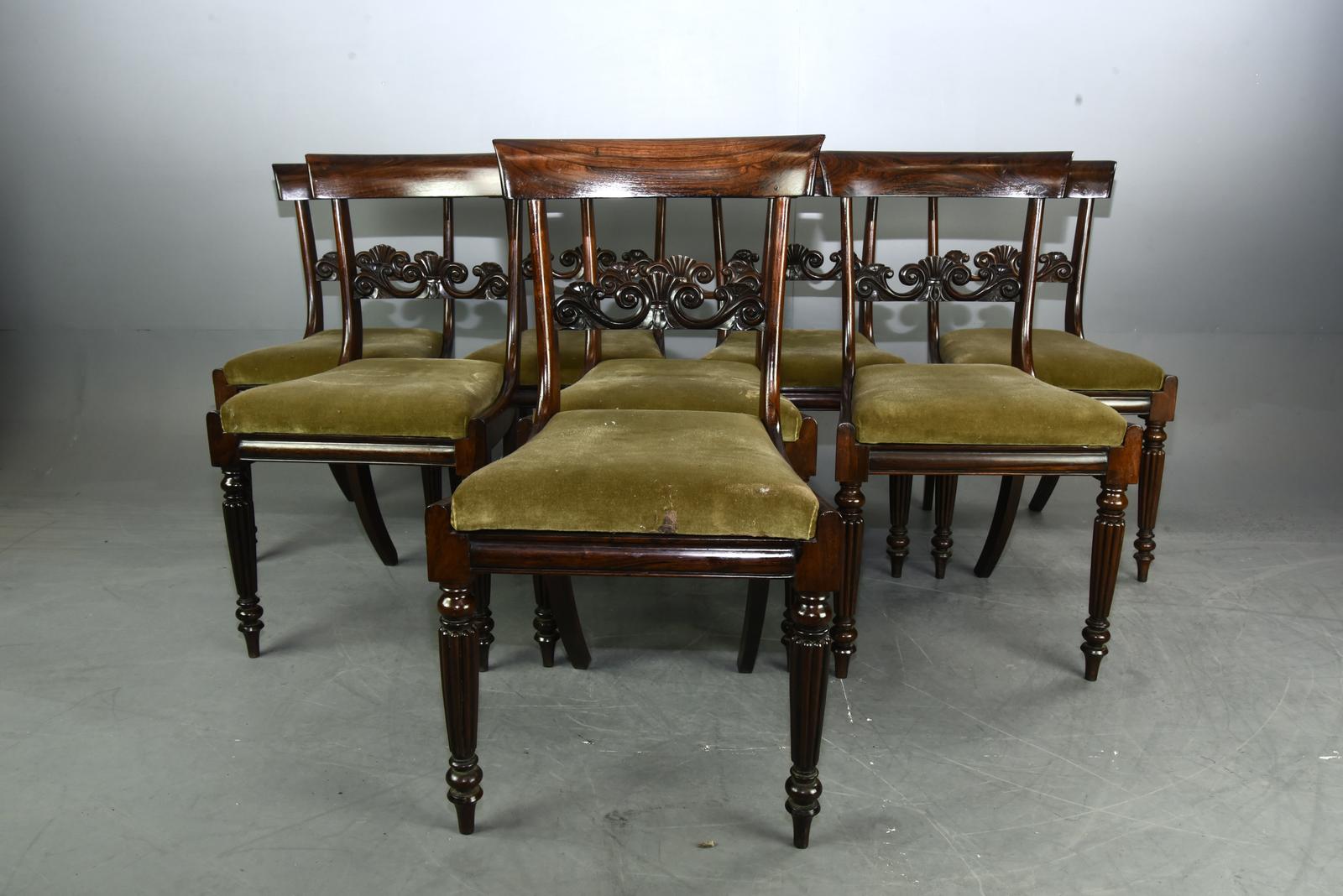 Fine set of eight Regency solid Rosewood dining chairs.