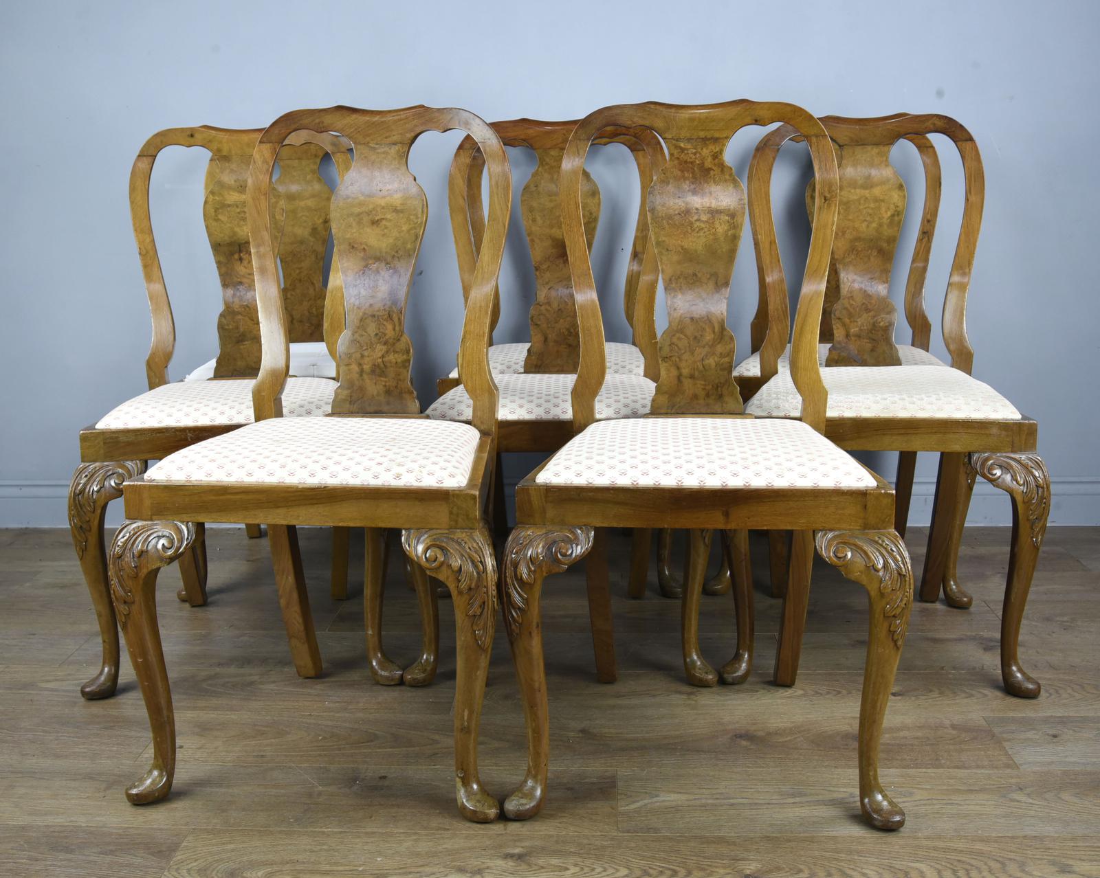 Set of Eight Walnut Queen Anne Style Dining Chairs