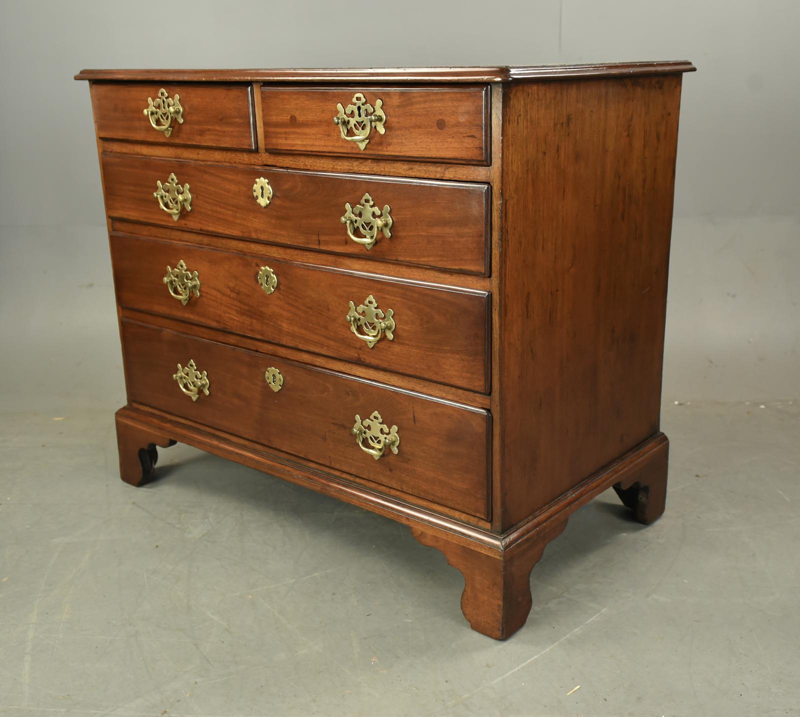 Good quality medium sized Georgian mahogany chest of drawers that has good oak lined drawers with front to back linings and fine hand cut dovetail joints .
