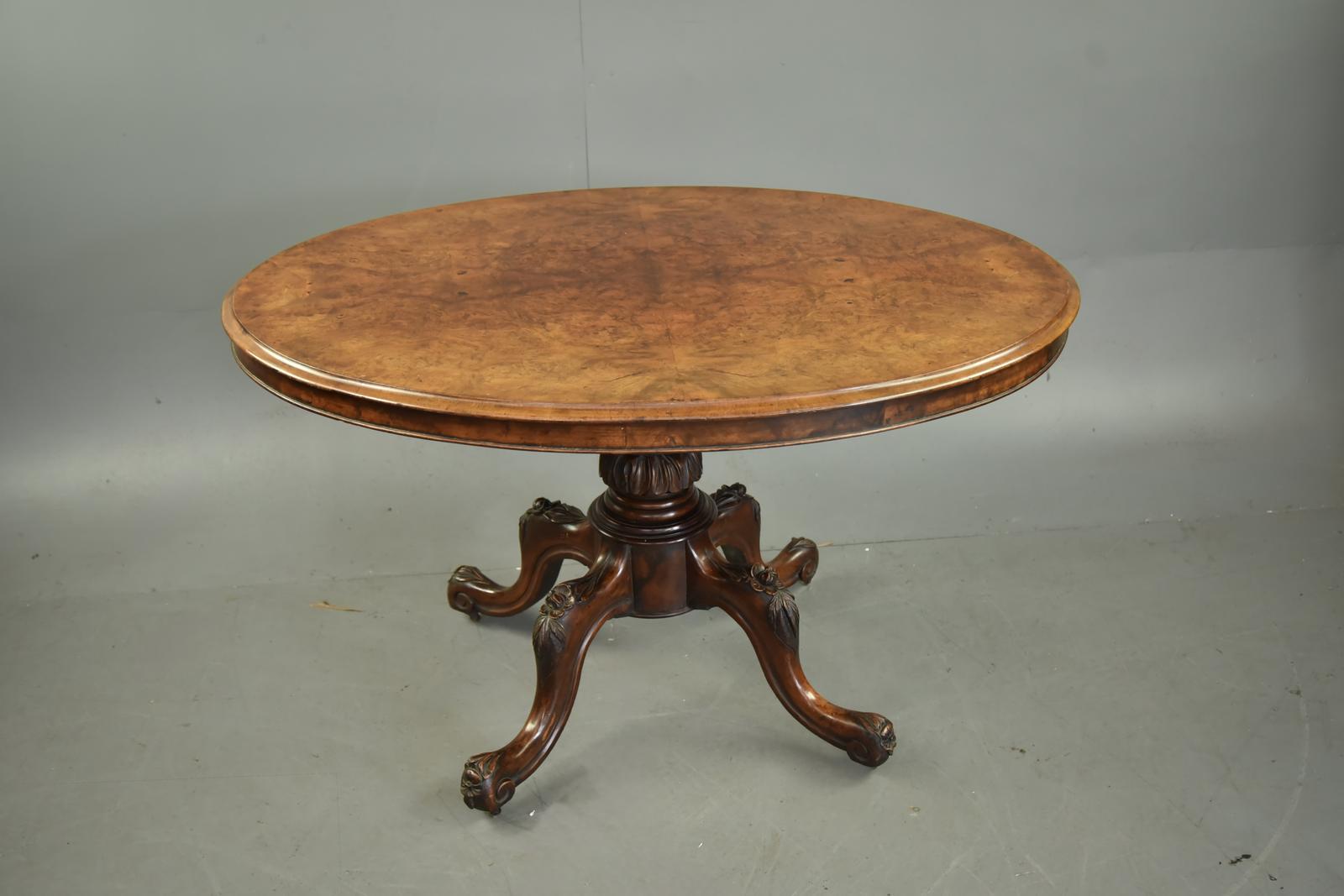 A superb Victorian burr walnut oval breakfast table, combining fine craftsmanship with elegant, practical design.