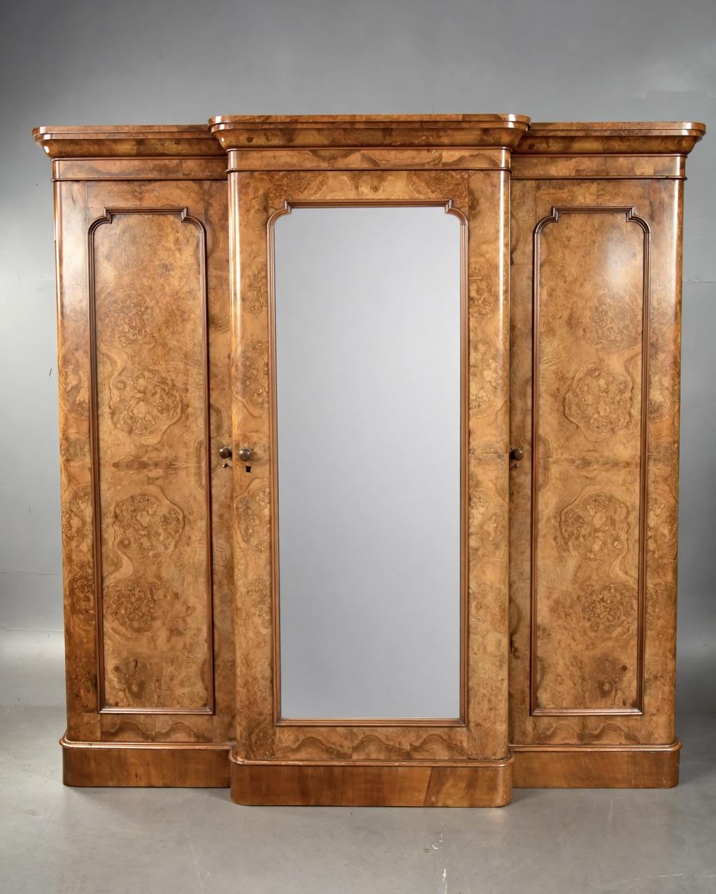 Mid-Victorian Burr Walnut Triple Wardrobe