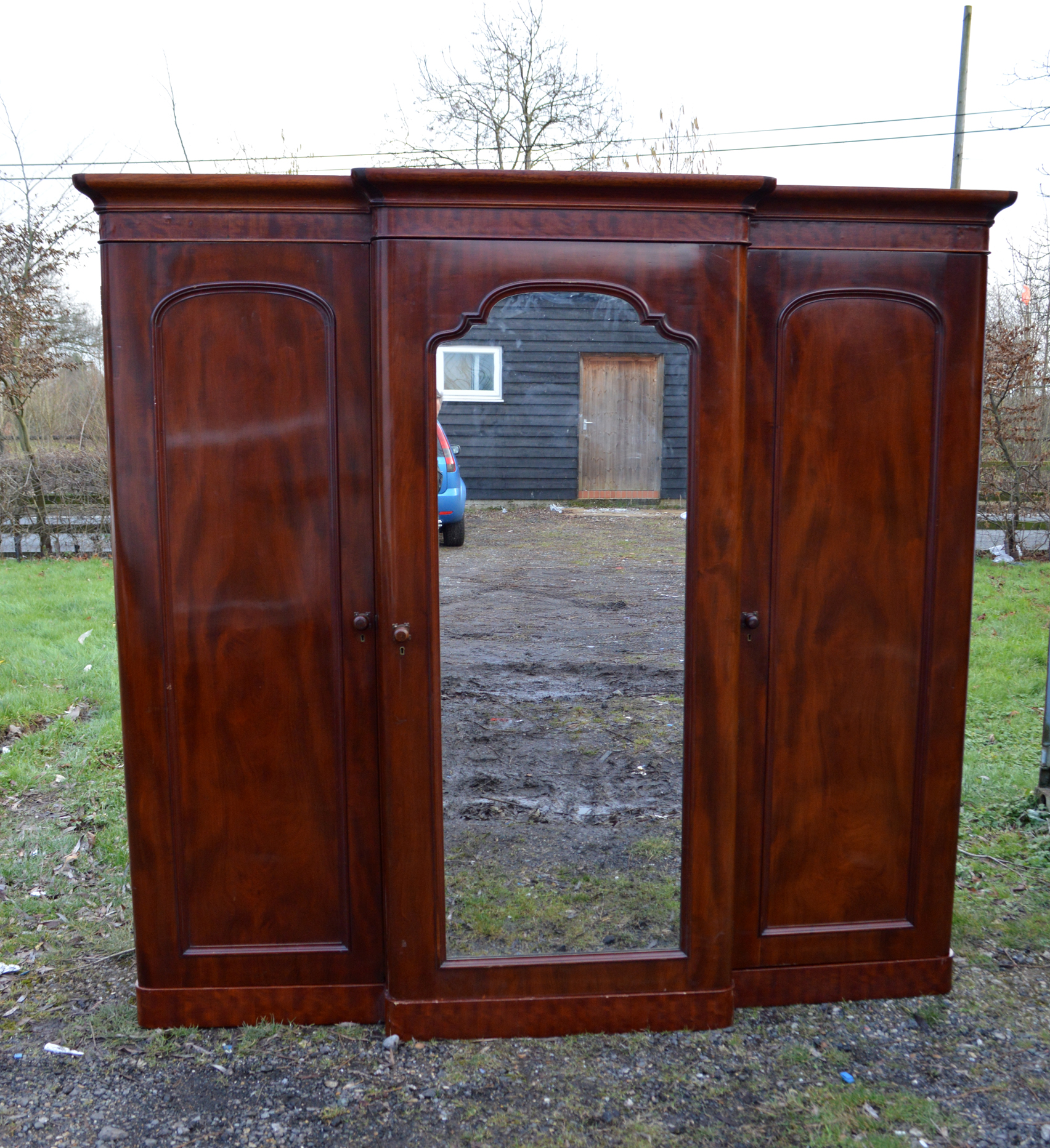 Victorian Mahogany Breakfront Triple Wardrobe Compactum