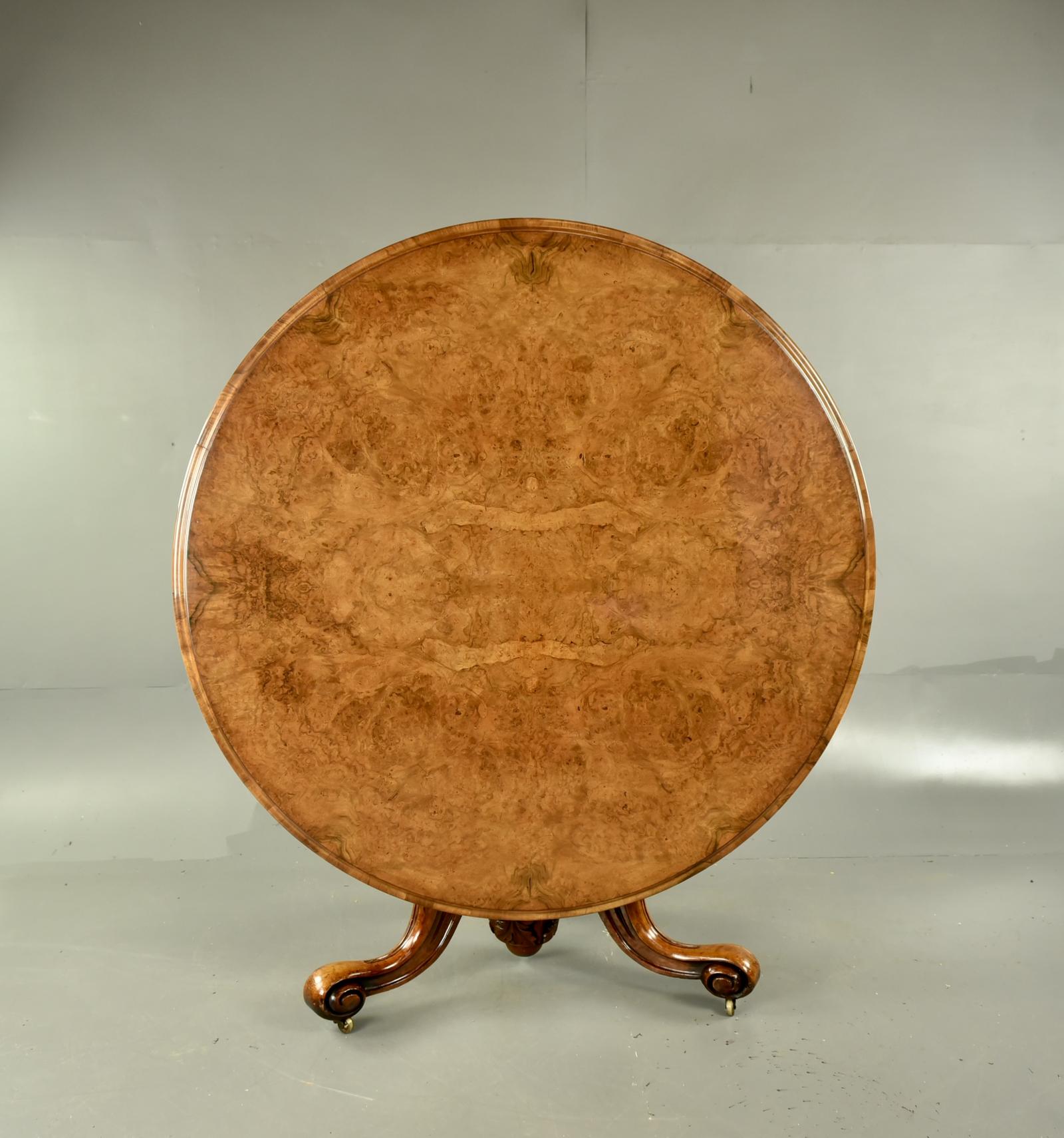 Fine Quality Victorian burr walnut circular dining table that will seat six by T H Filmers cabinet upholstery and carpet manufactory 28 32 & 35 Berniers street Oxford street London.