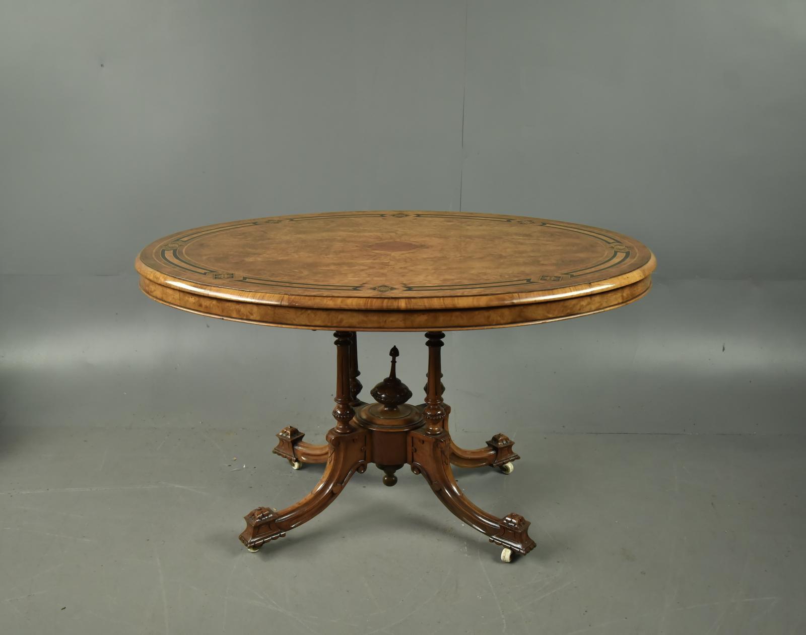 Victorian Walnut Inlaid Oval Centre Table, Circa 1870