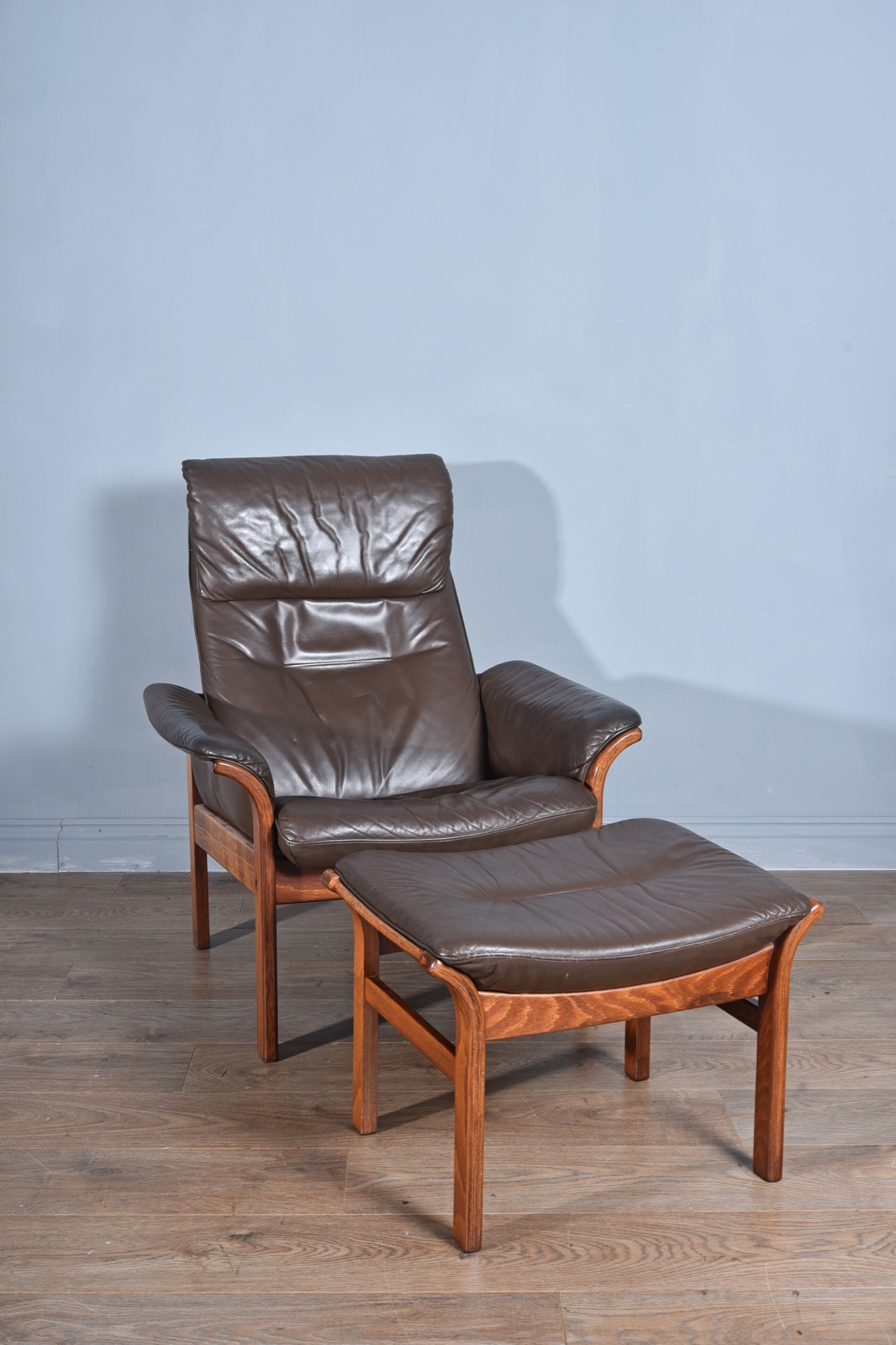 Vintage Scandinavian Leather Reclining Chair & Stool by Gote Mobel